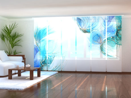 Set di 6 Tende a Pannello Acquerello Verde-Turchese con Linee Dorate