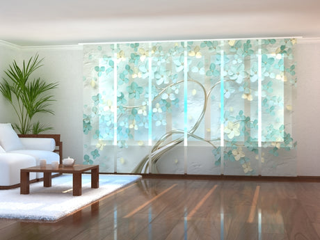 Set di 6 Tende a Pannello Favoloso Albero con Fiori Verdi