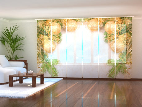 Set di 6 Tende a Pannello Fiori Tropicali sulla Spiaggia
