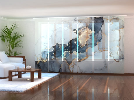 Set di 6 Tende a Pannello Lussuoso Marmo in Nero, Grigio e Oro