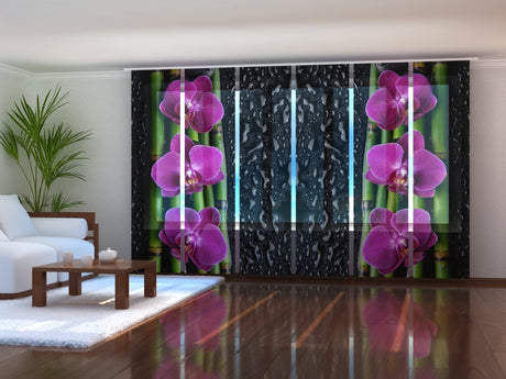 Set di 6 Tende a Pannello Orchidea Rosa Con Bambù e Pietre