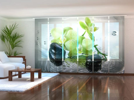 Set di 6 Tende a Pannello Orchidee e Pietre Zen