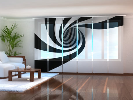 Set di 6 Tende a Pannello Percorso di Legno in Bianco e Nero