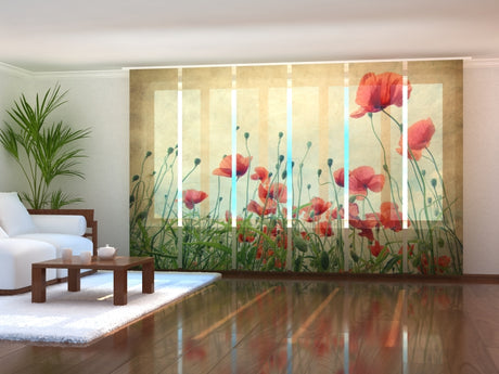Set di 6 Tende a Pannello Papaveri alla Moda ad Acquerello