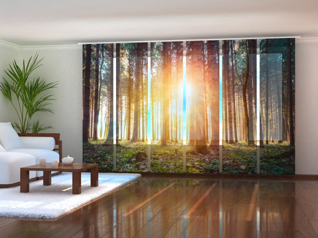 Set di 6 Tende a Pannello Tramonto Magico nel Bosco