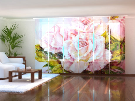 Set di 6 Tende a Pannello Tenerezza delle Rose Rosa