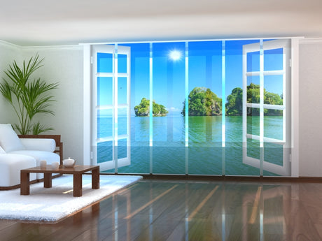 Set di 6 Tende a Pannello Veduta dell'Oceano dalla Finestra