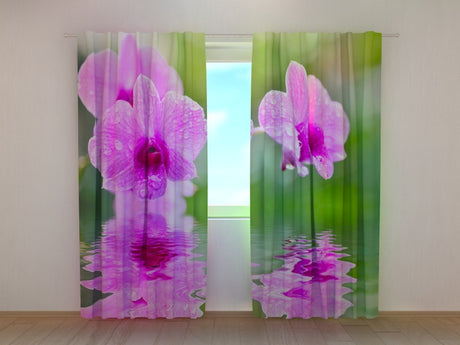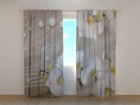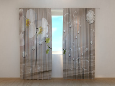 Foto Tende Orchidee e Strass su Seta Beige 2