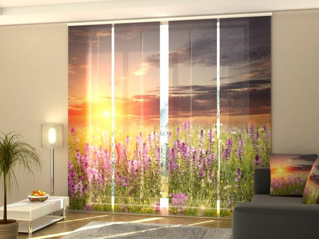 Set di 4 Tende a Pannello Tramonto su un Campo di Lavanda