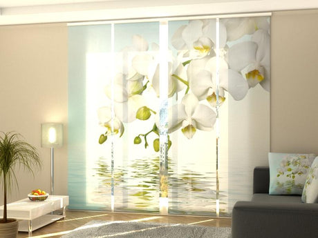 Set di 4 Tende a Pannello Ramoscello di Orchidea Bianca