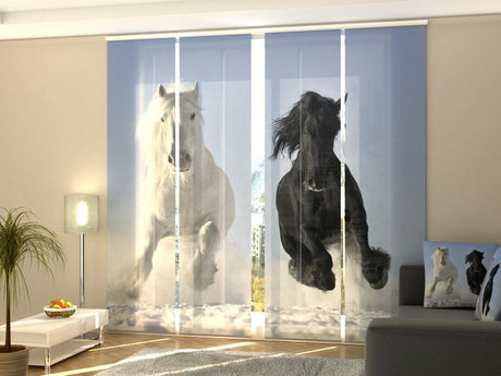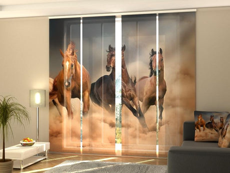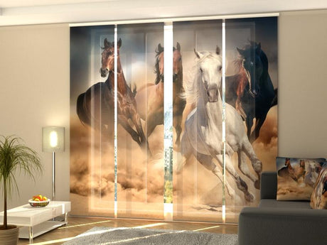 Set di 4 Tende a Pannello Cavalli nel Campo di Papaveri