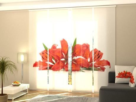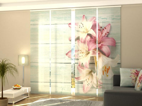 Set di 4 Tende a Pannello Gigli Colorati sul Legno