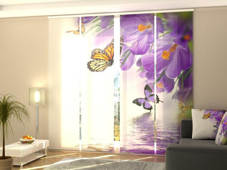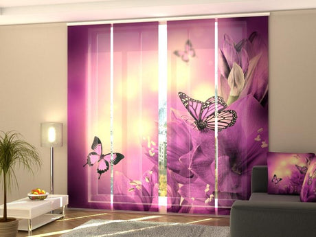 Set di 4 Tende a Pannello Farfalle Cremisi e Fiori