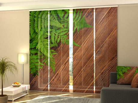 Set di 4 Tende a Pannello Foglie di Felce su Legno di Quercia