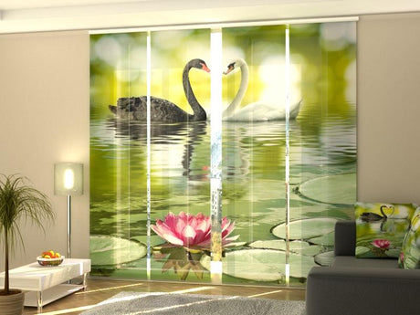 Set di 4 Tende a Pannello Cigni in Bianco e Nero