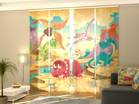 Set di 4 Tende a Pannello Dinosauri Preistorici