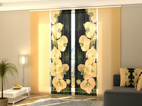 Set di 4 Tende a Pannello Orchidee con Pietre Yin Yang
