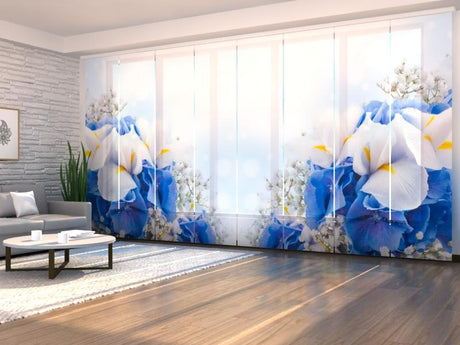 Set di 8 Tende a Pannello Bouquet Blu e Bianco
