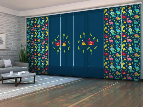 Set di 8 Tende a Pannello Dinosauri Divertenti