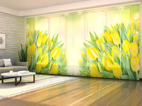 Set di 8 Tende a Pannello Vivaci Tulipani Gialli Primaverili