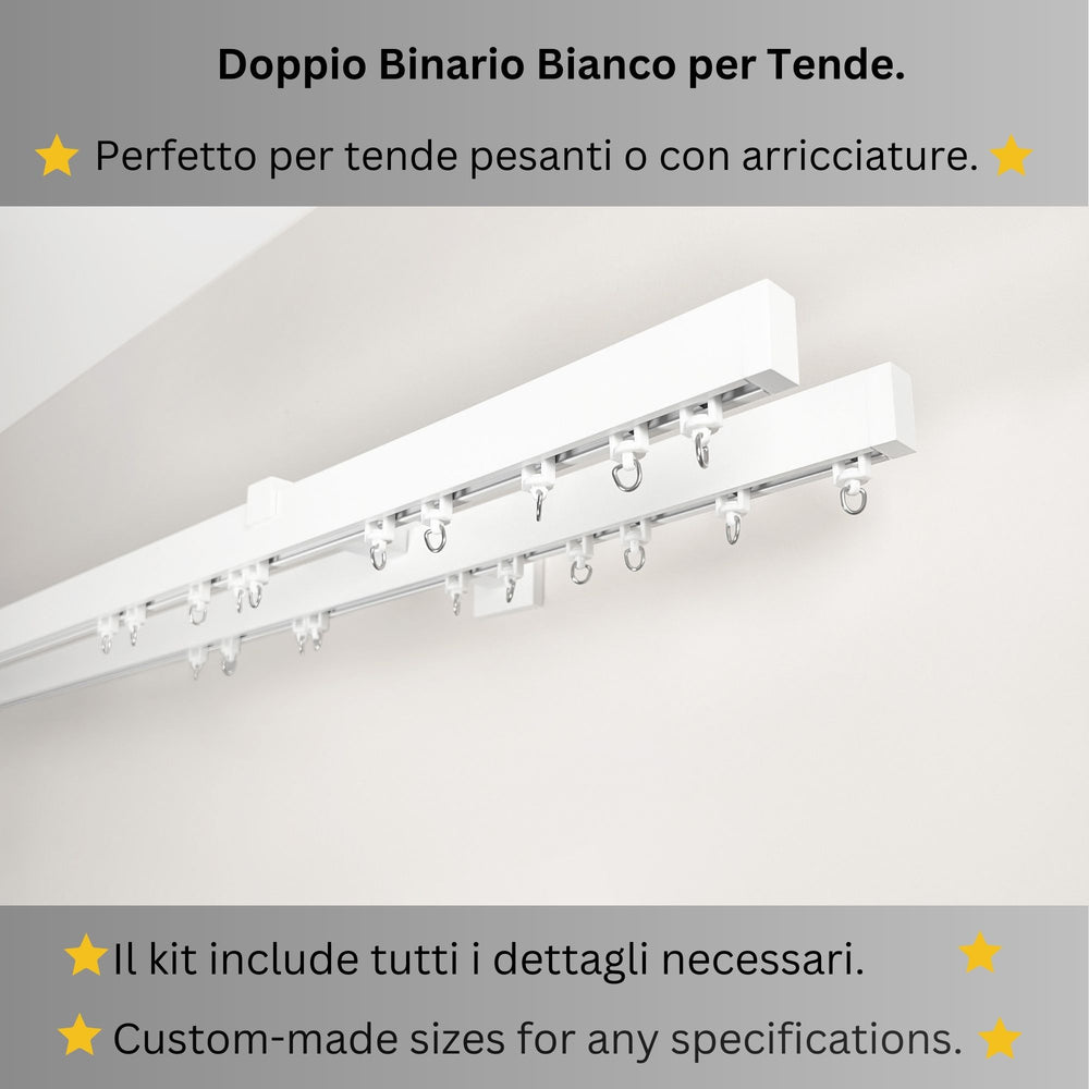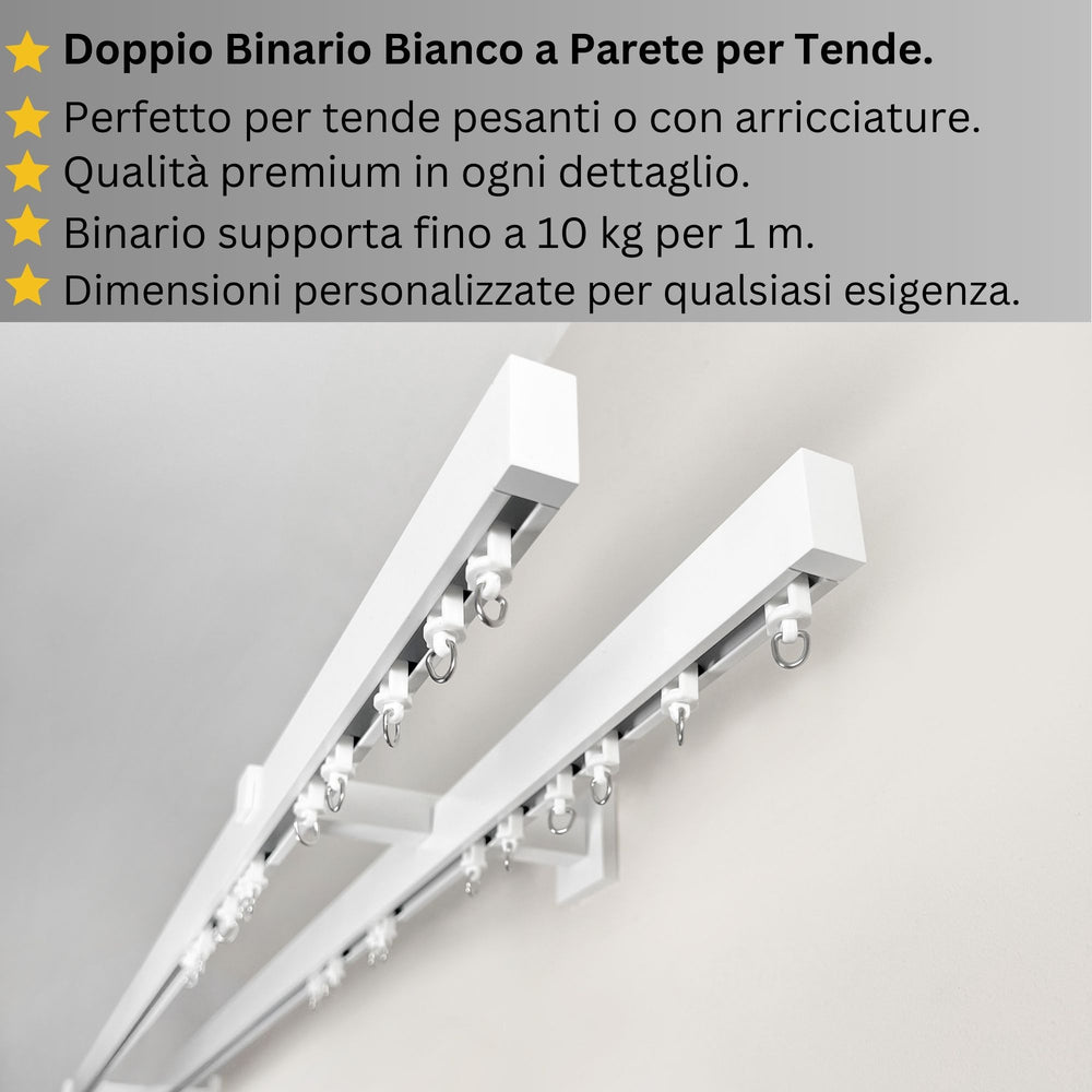 Binario Doppio per Tende Bianco - Montaggio a Parete, Su Misura, Design Elegante e Funzionale