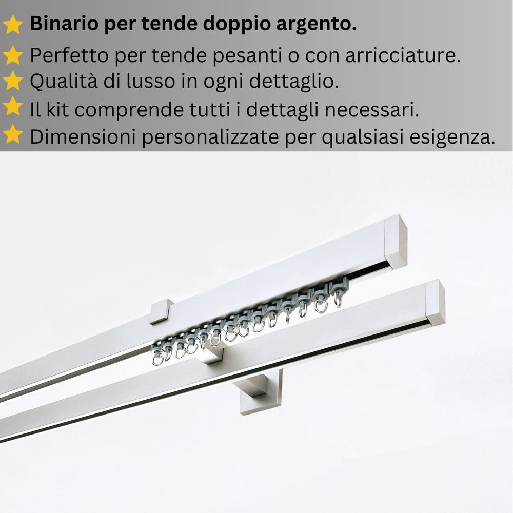 Binario Doppio per Tende, color Argento, a Parete – Misure Personalizzate, Design Elegante e Funzionale