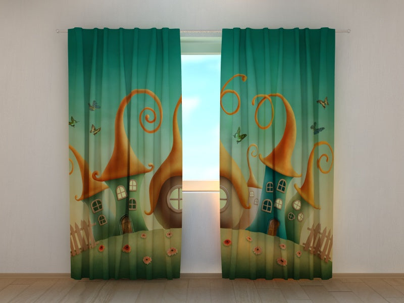Foto Tenda "La Tua Favola" per cameretta bambina. Tessuto Silk, fissaggio - taschino per bastone.