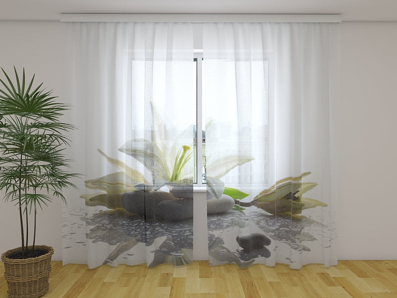 Set di Tende a Pannello in tessuto Screen "Orchidea Rosa con Bambù e Pietre".