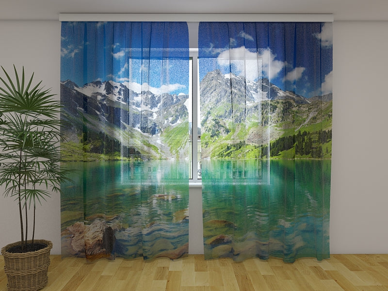 Tende con stampa personalizzata per soggiorno. Tessuto Silk, fissaggio - taschino per bastone.