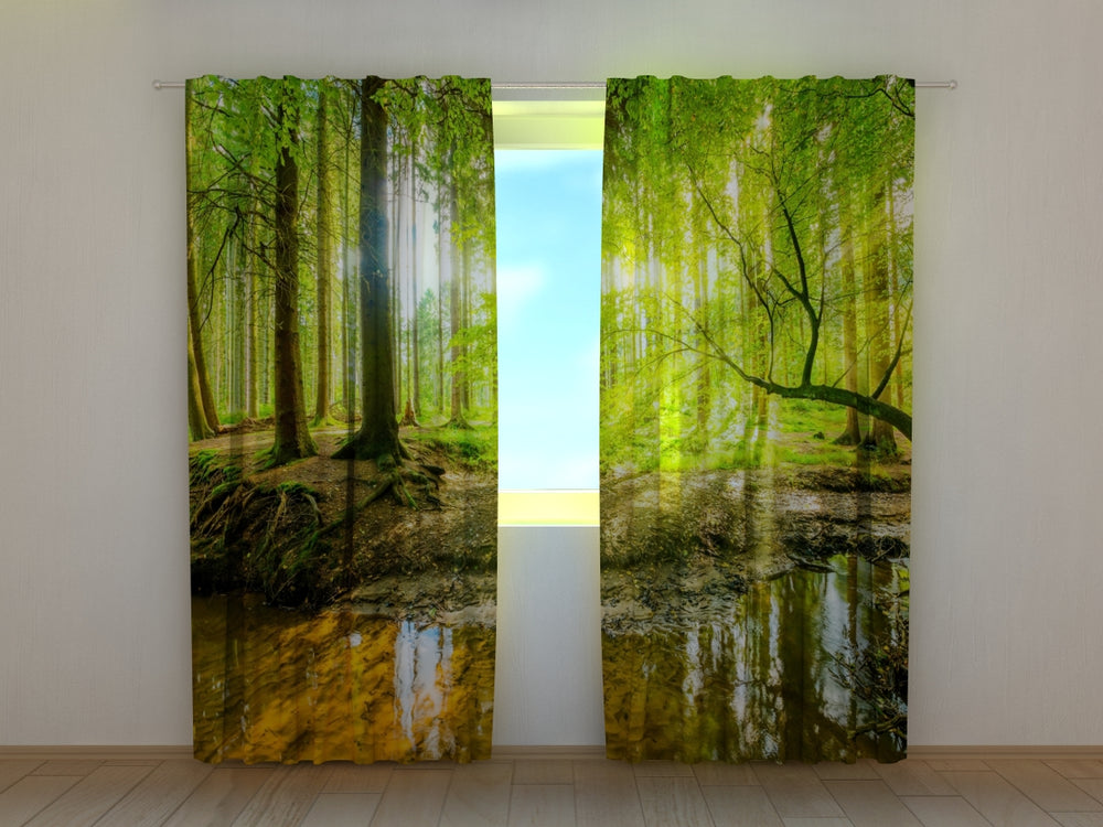 Tende con stampa personalizzata per camera da letto. Tessuto Silk, fissaggio - taschino per bastone.
