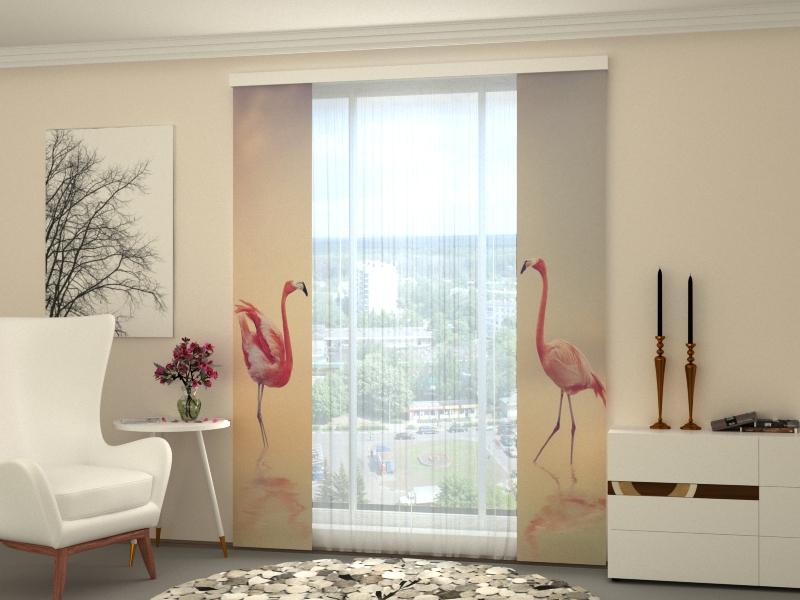 Set di 2 Tende a Pannello Fenicotteri Rosa al Tramonto