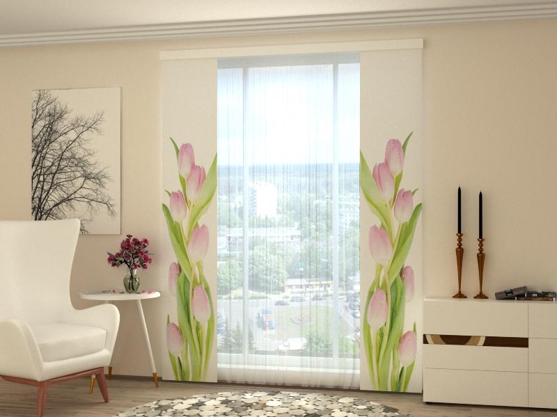 Set di 2 Tende a Pannello Meravigliosa Tulipani Rosa
