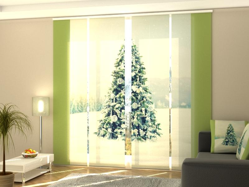 Set di 4 Tende a Pannello Albero di Natale con Decorazioni Bianche
