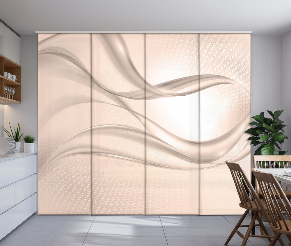 Set di 4 Tende a Pannello Astrazione Tortora Chiara