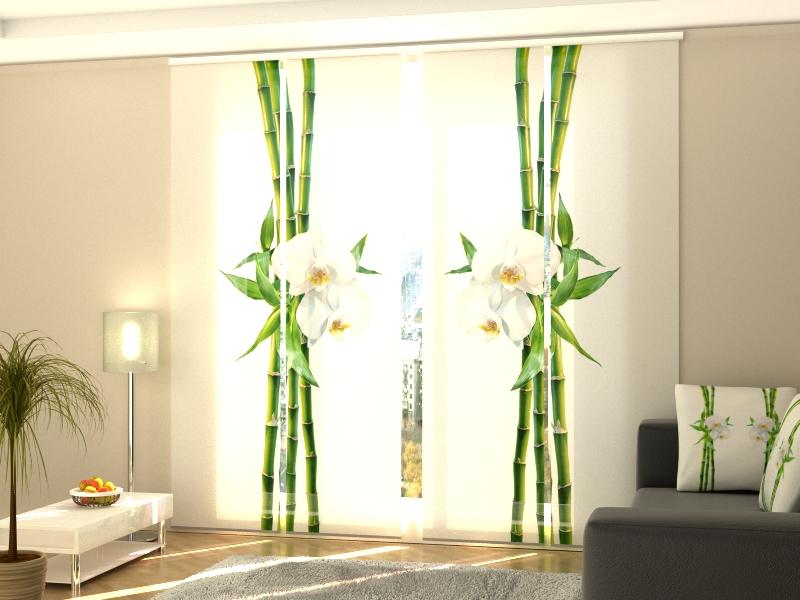 Set di 4 Tende a Pannello Bambù e Orchidea Bianca