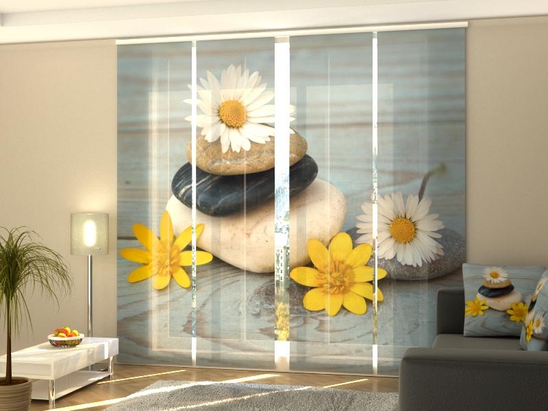 Set di 4 Tende a Pannello Camomille e Pietre