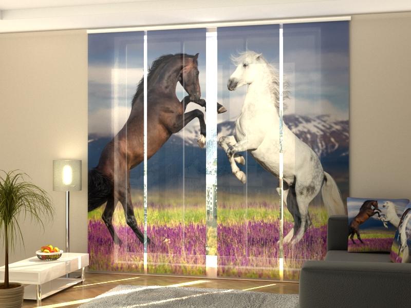 Set di 4 Tende a Pannello Cavalli su un Campo di Lavanda