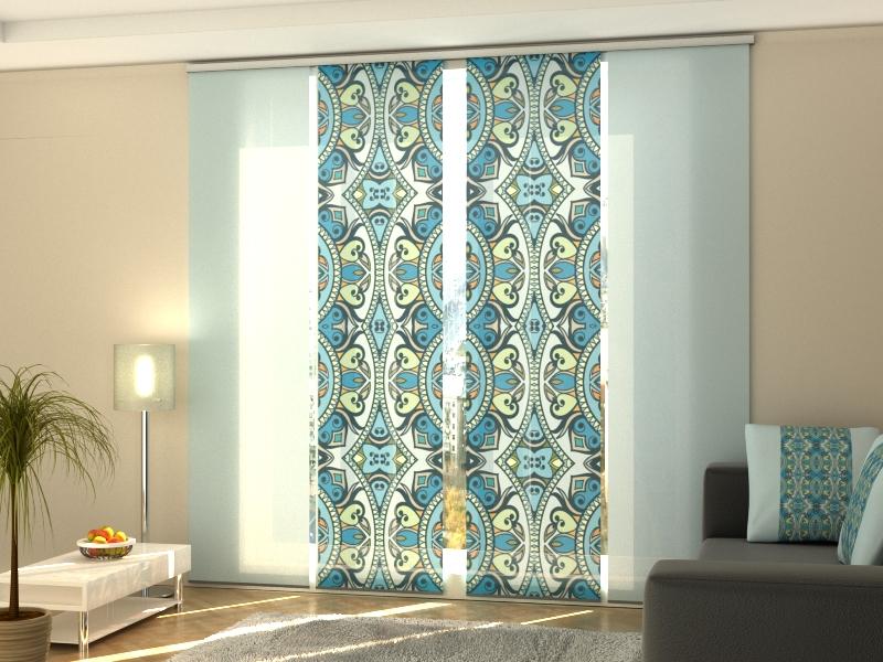 Tenda Panoramica "Spettacolare Illustrazione Blu" per bellissima vetrata panoramica, composta da 4 parti e realizzata in tessuto Silk.