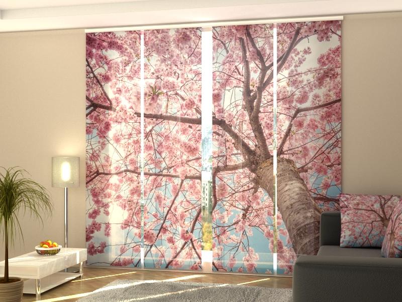 Set di 4 Tende a Pannello Ciliegio in Fiore dal Basso