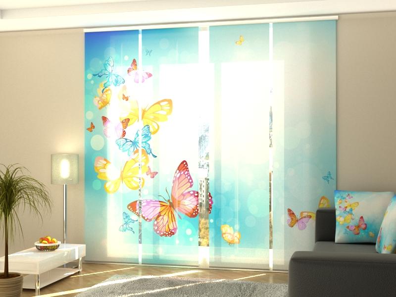 Set di 4 Tende a Pannello Farfalla nel Cielo
