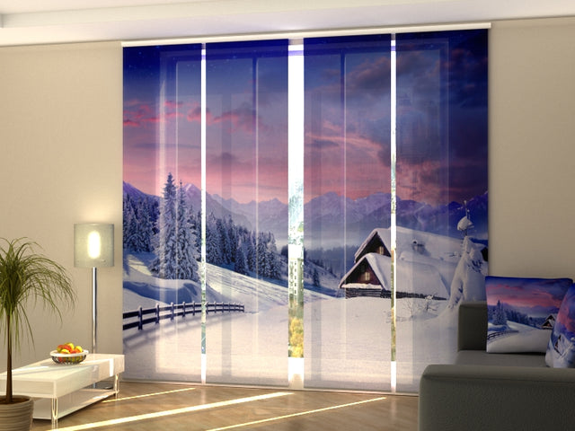 Set di 4 Tende a Pannello Favolosa Notte di Natale in Montagna