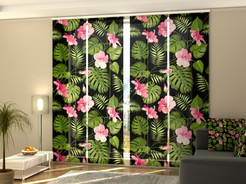 Set di 4 Tende a Pannello Fiori Tropicali su Fondo Nero
