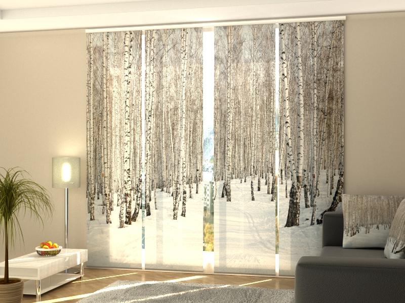 Set di 4 Tende a Pannello Foresta di Betulle in Inverno