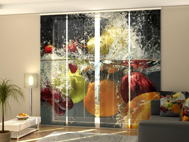 Set di 4 Tende a Pannello Frutta Fresca in Acqua