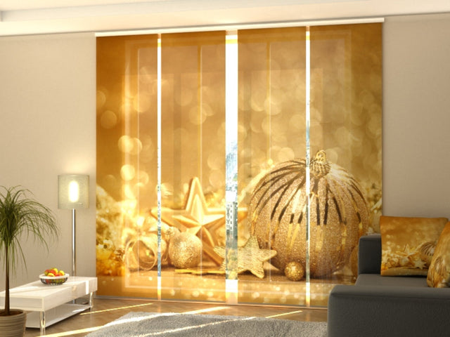 Set di 4 Tende a Pannello Giocattoli di Natale Dorati