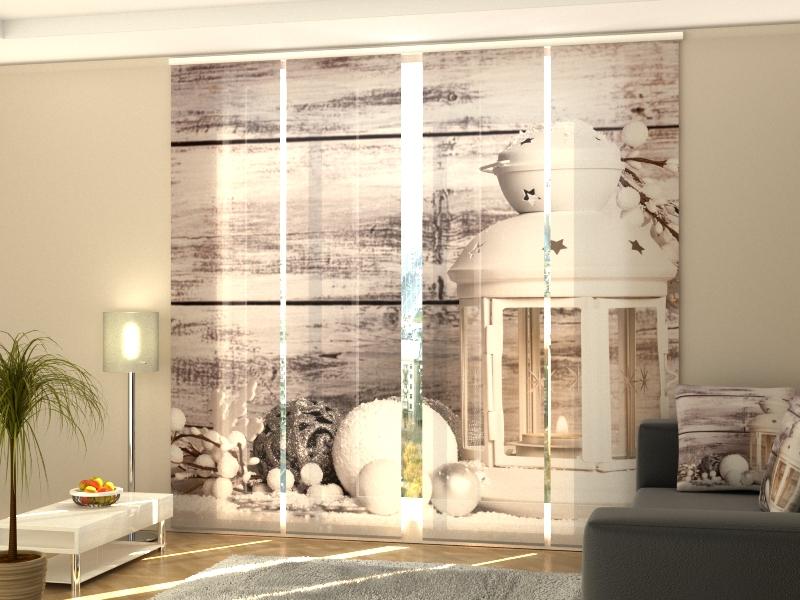 Set di 4 Tende a Pannello Lanterna Natalizia Bianca