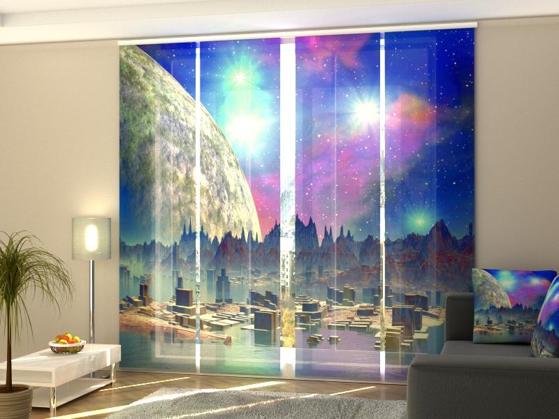 Tende con stampa personalizzata per camera da letto. Tessuto Silk, fissaggio - taschino per bastone.