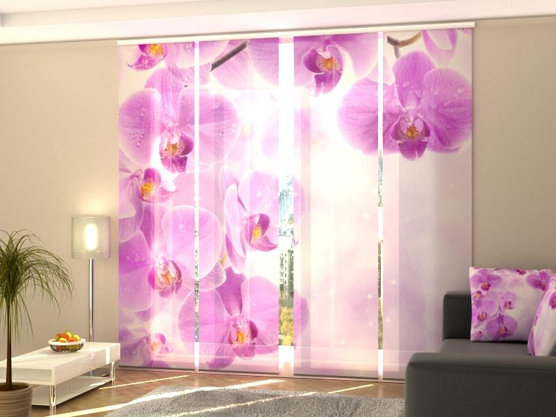 Tulle con stampa "Orchidea Viviana" e foto-federe. Tessuto Chiffon, fissaggio - taschino per bastone.