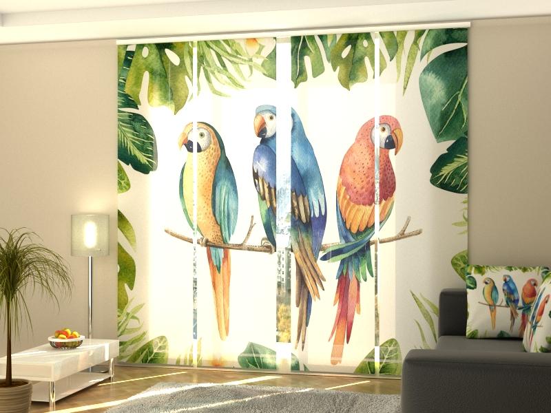 Set di 4 Tende a Pannello Piante e Pappagalli ad Acquerello