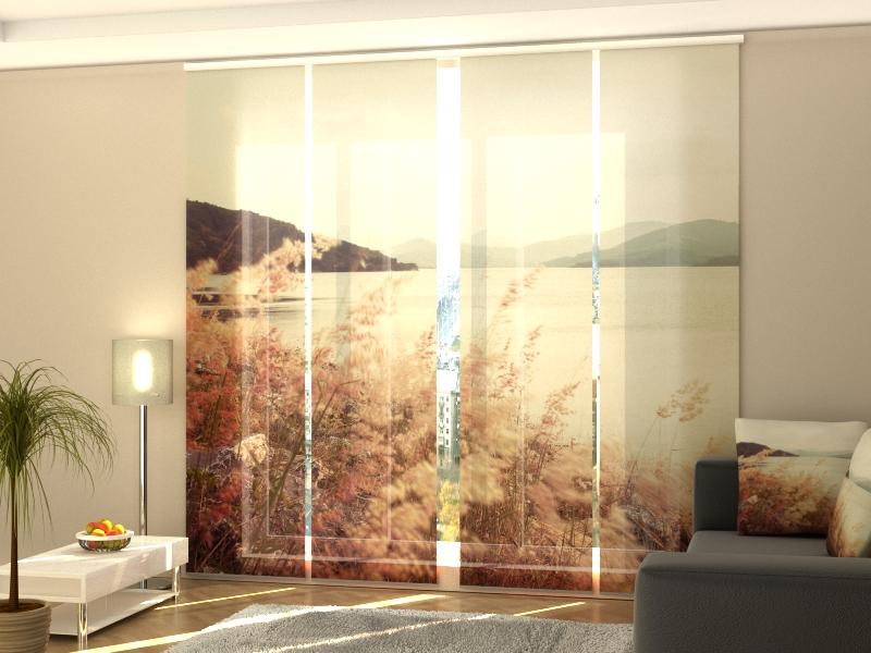 Set di 4 Tende a Pannello Prato e Montagne in Stile Vintage